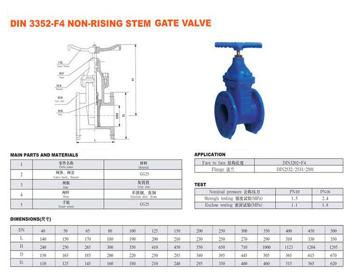 DIN 3352-F4 NON-RISING STEM GATE VALVE
